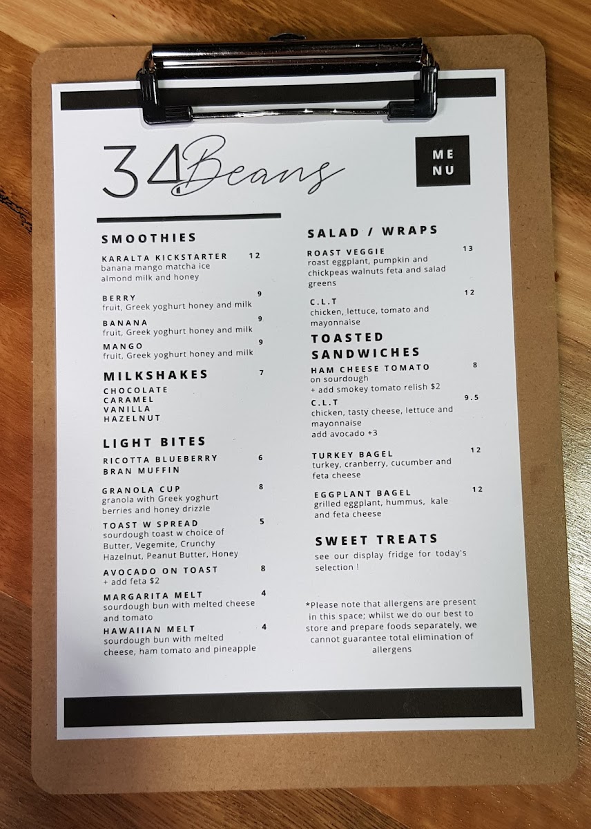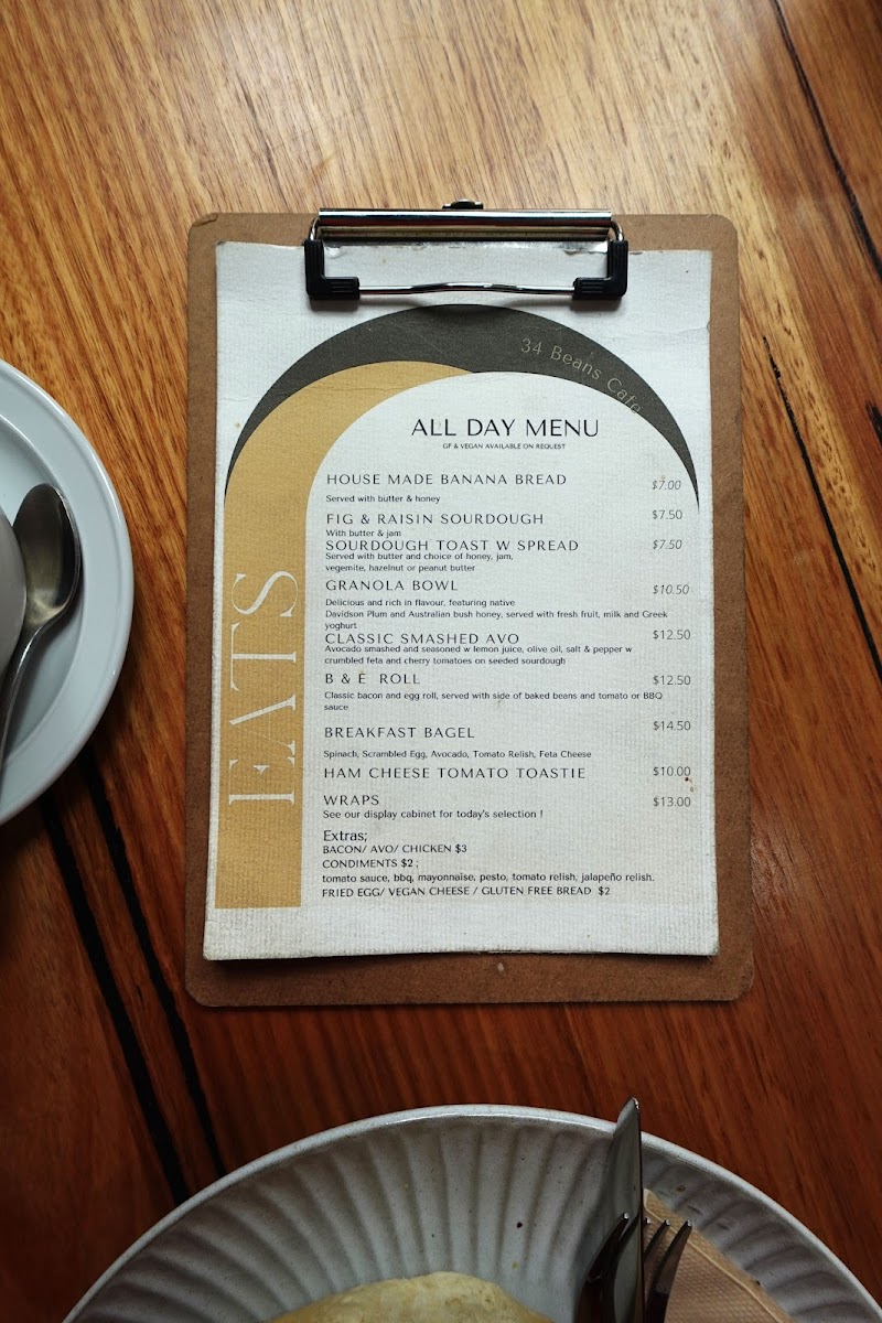 34 Beans Cafe Menu